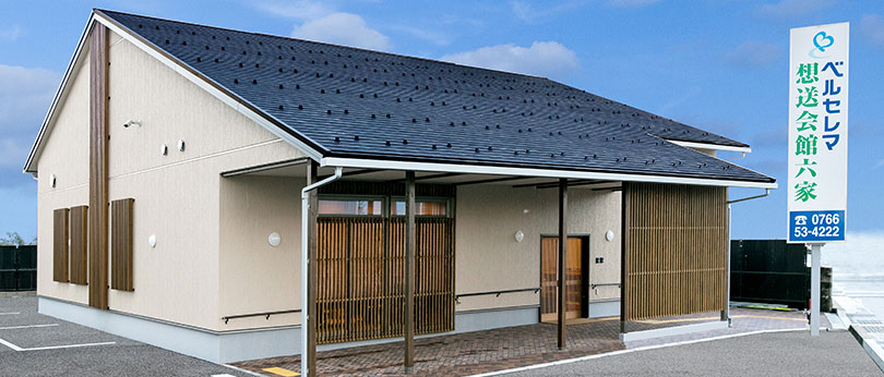 アクセス 想送会館六家 所在地 〒933-0321 富山県高岡市六家字畑田1216-1 TEL 0766-53-4222 ご危篤・ご逝去でお急ぎの方 0120-108-294 アクセス あいの風とやま鉄道「高岡やぶなみ駅」より徒歩20分能越自動車道「高岡I.C.」より車で1分JR「高岡駅」より車で15分加越能バス「六家バス停」より徒歩2分 駐車場 17台
